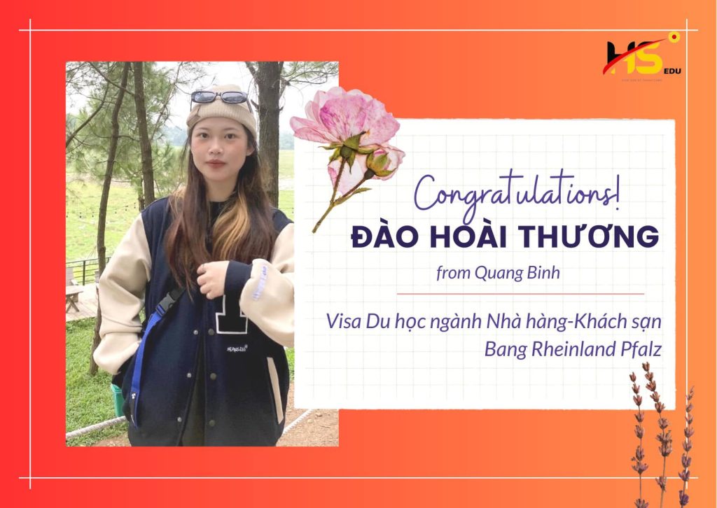 Chúc mừng cô gái Quảng Bình xinh đẹp và cá tính – Đào Hoài Thương đã thành công nhận được Visa Du học Nghề Nhà hàng-Khách sạn Bang Rheinland Pfalz.