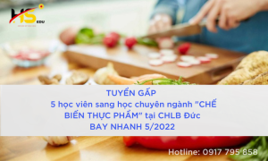 ✈ BAY NHANH T5/2022 CHỈ 5 SUẤT – DÀNH CHO HỌC VIÊN ĐĂNG KÝ NHANH NHẤT 🌻🔊 HSedu đang cần tuyển gấp 5 học viên sang học chuyên ngành “CHẾ BIẾN THỰC PHẨM” tại Bang Hessen – CHLB Đức. ✍ Điều kiện: + Nam/ Nữ tuổi từ 18 -30 + Bằng PTTH + Chứng chỉ…